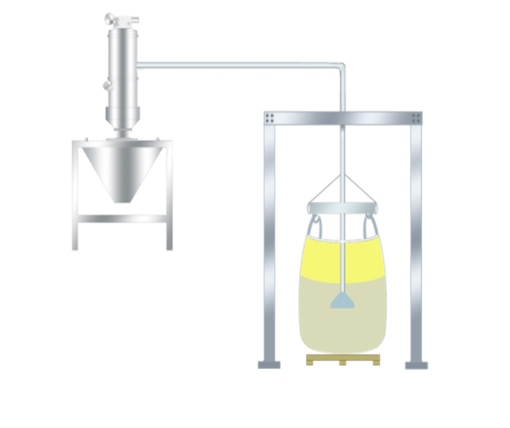 2.下吸料:用电动葫芦将吨袋调到吸料口位置,将下料口压死,做到无粉尘泄露。解开绳索物料慢慢落下,呼吸气囊起到补气的作用。电动葫芦上下提升做到无残料。下端和做筛选装置,排除异物。