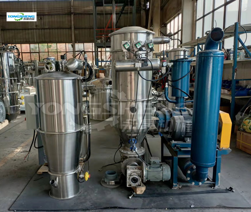 吸送到旋风别离器(俗称沙克龙进行气固别离,实现从低处或散装处多点向高处一点或多点进行物料运送。其特点是物料不外泄,不发生环境问题,供料设备相对简单。