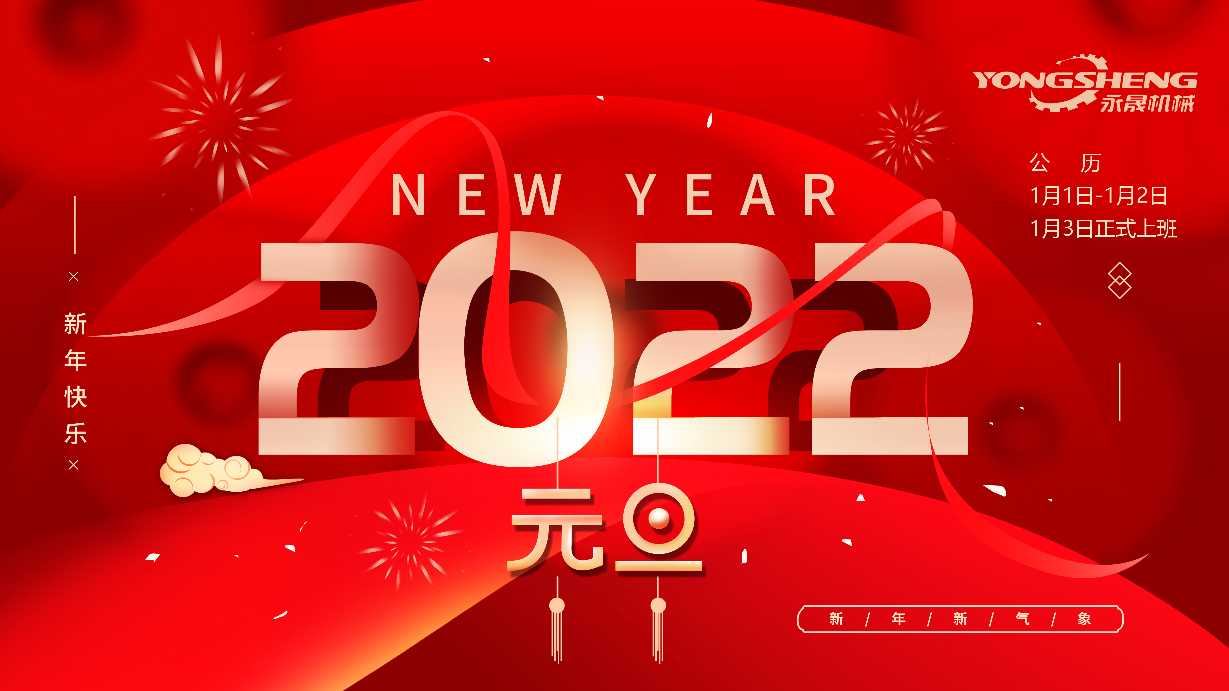 在2022年元旦即将到来之际,首先感谢永晟机械客户这一年来对我们公司的支持和帮忙!永晟机械全体员工祝您和您的家人元旦快乐!新年吉祥!善缘皆成!
