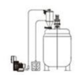 该输送装置是将真空泵装设在整个输送装置的尾部,因而整个系统处于负压操作。由于吸嘴附近低于大气压力,物料与空气很容易吸进管内,并沿着管道流动进入分离器,物料由于本身的重力作用而沉降,废气过滤后经真空泵排出。