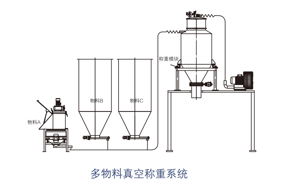 4. 后道的真空输送系统将称重好的物料输送至指点设备