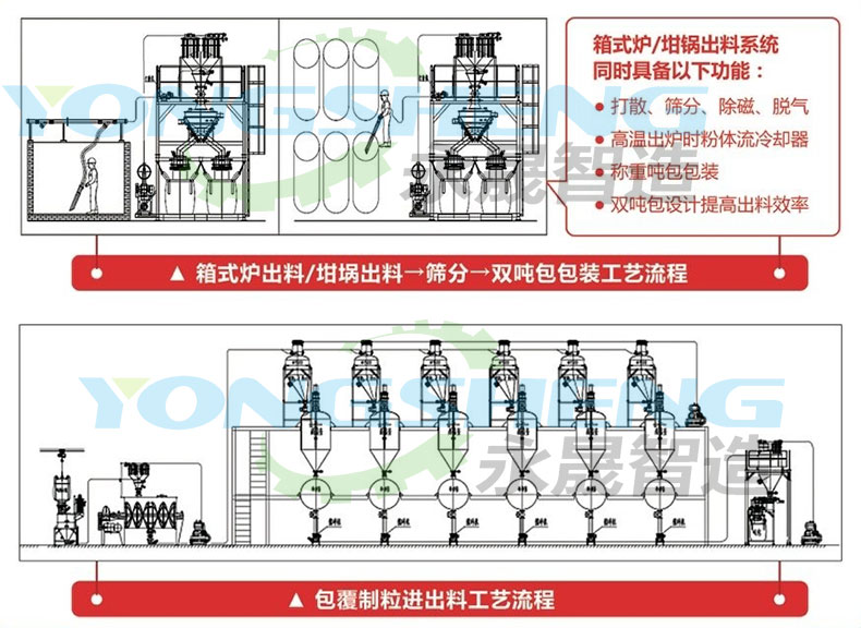 为大力减少机械化成本、降低能耗,永晟智造投入巨资加大技术力量和人力成本,采用领先技术自主研发了专门针对箱式炉粉体自动无尘抽料系统。本系统采用吸料地车,技术包含机床精密行走、数控、自动化控制、气力输送、筛分技术、包装系统工等七门学科,自动化分块抽料,从而实现分区无人操作。