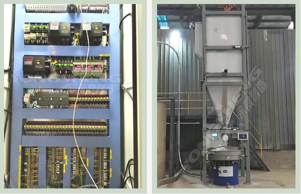 ■ 全密闭自动拆包机替代人工刀割,内置除尘风机,避免将粉尘泄漏;底部与振动筛联动,筛上杂质自动分离,投料效率提升2倍;