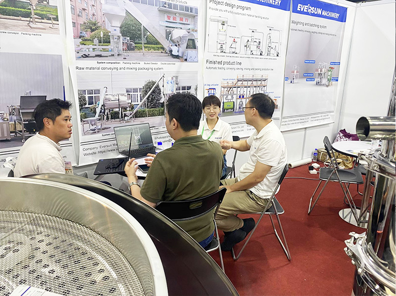 基于此,我司参展团队前期深度调研东南亚客户需求,针对性推出“无尘投料-真空输送-筛分包装”全流程解决方案,覆盖粉体从原料拆包到成品包装的全环节: